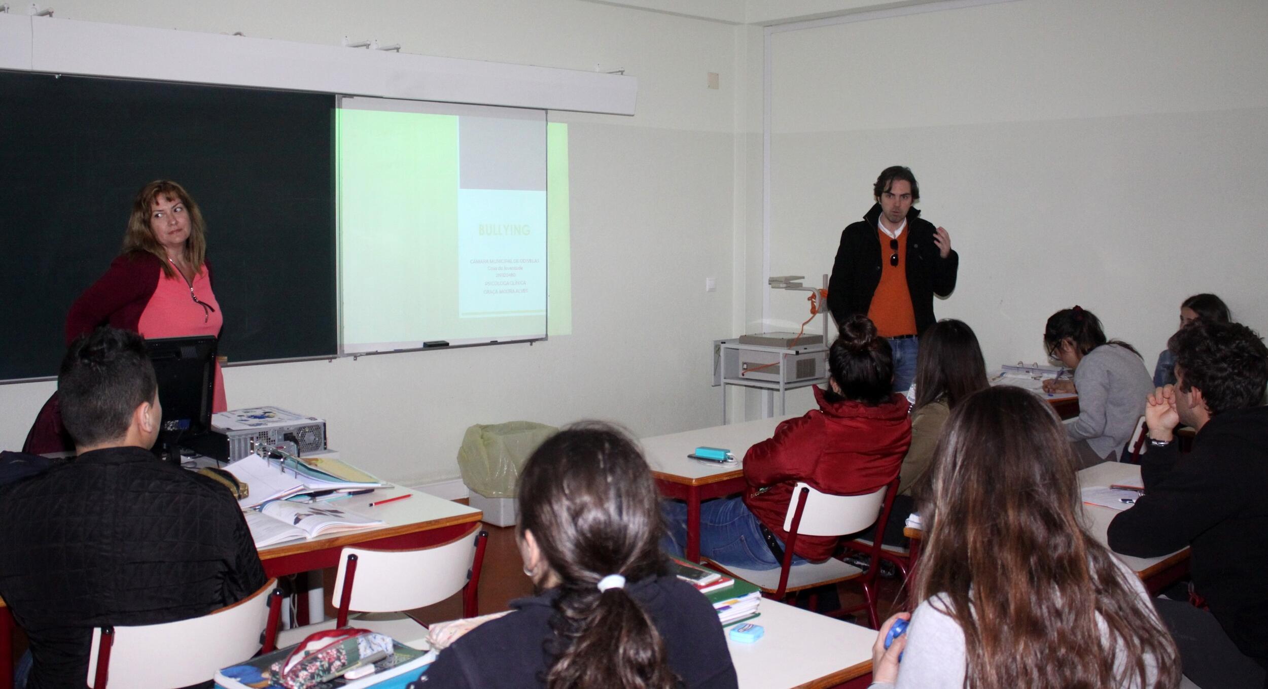 Uma turma do Curso Profissional Secundário da EPADD - Escola Profissional Agrícola D. Dinis, na Paiã, recebeu a 13 de março, uma psicóloga do Gabinete Orienta-te da Câmara Municipal de Odivelas que realizou uma sessão informativa sobre "Bullying". Momento para partilhar conhecimentos, refletir sobre estratégias anti-bullying e ainda para realizar exercícios práticos.