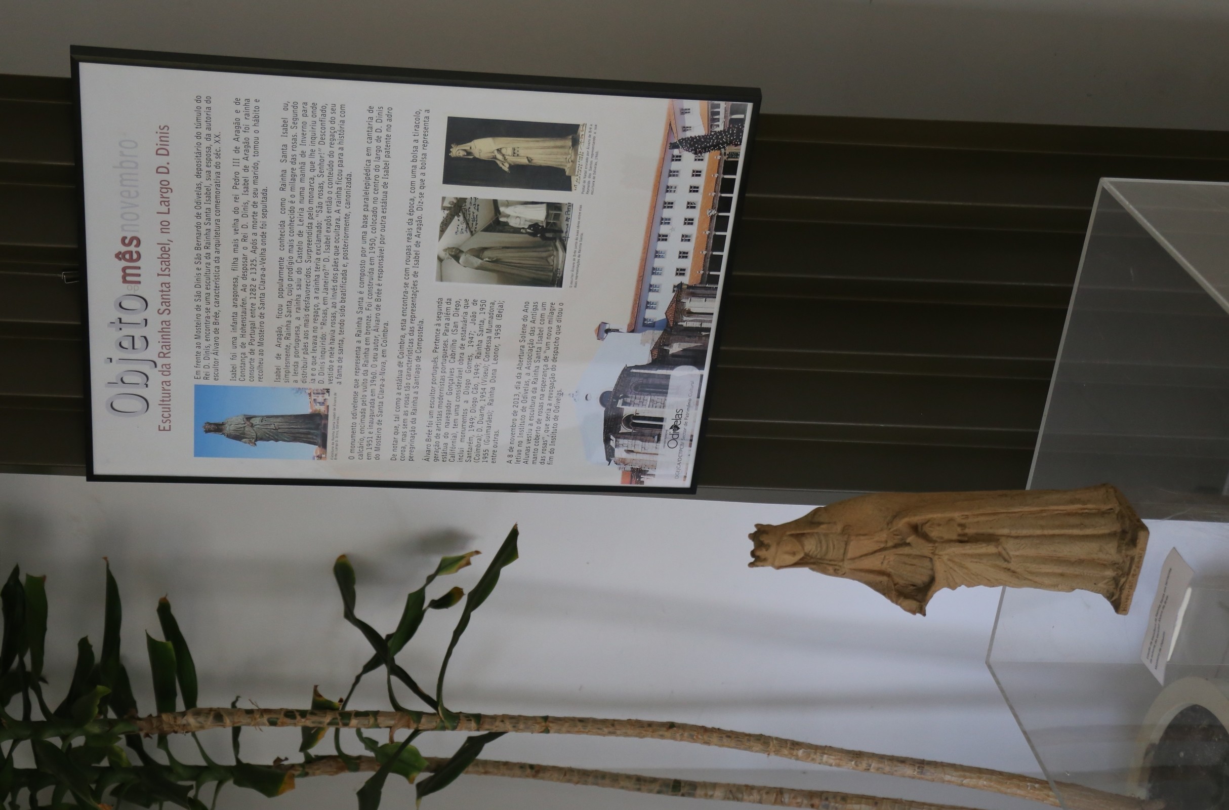 A rubrica «Objeto do Mês» destaca, neste ano de 2018, o Mosteiro de São Dinis e São Bernardo. Neste mês de novembro encontra-se patente, nos Paços do Concelho, a exposição dedicada à Escultura da Rainha Santa Isabel, situada no Largo D. Dinis, em Odivelas.