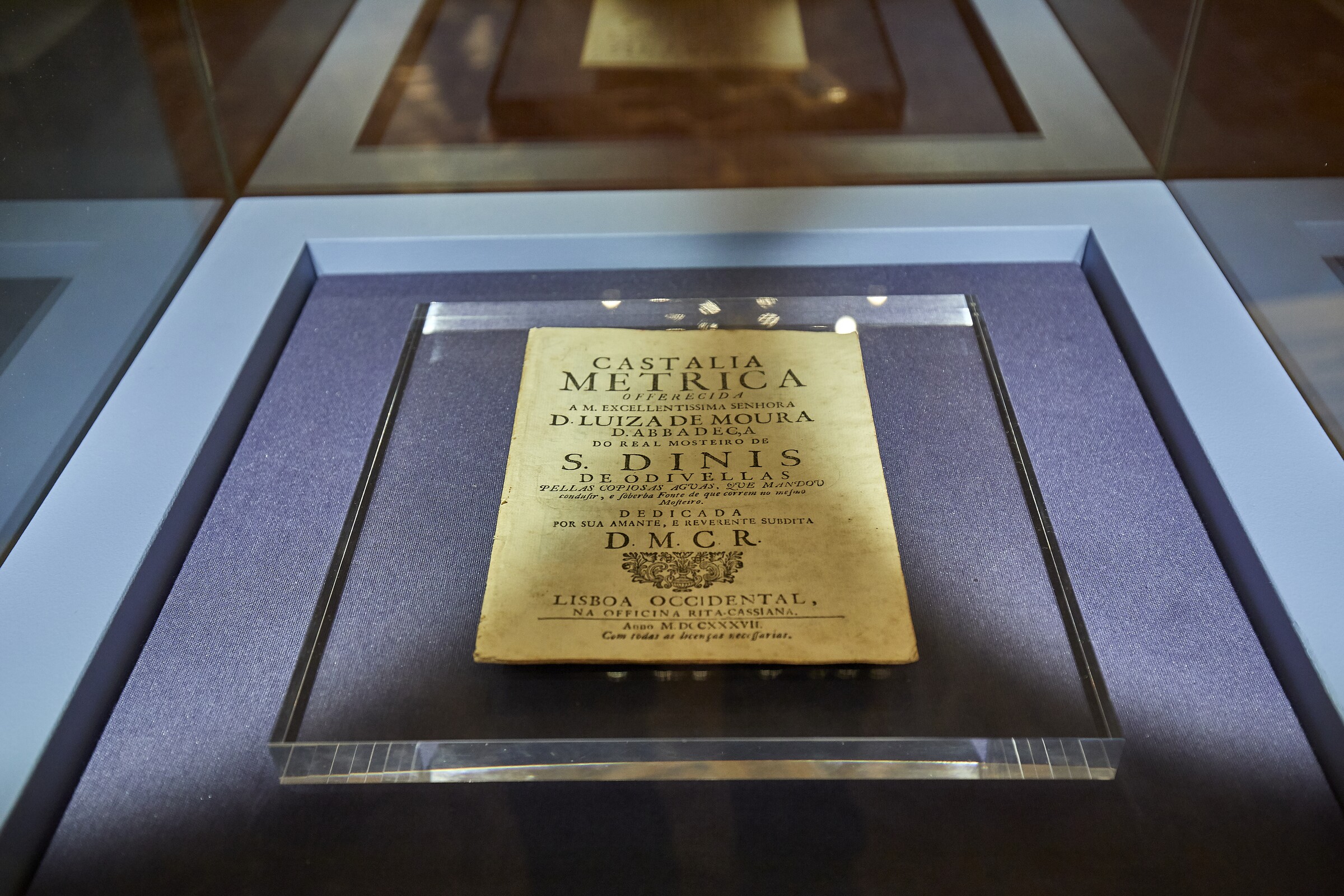 Exemplo desse trabalho, é a obra literária datada do século XVIII, intitulada “Castália Métrica”, que se encontrava num antiquário e está patente na exposição “Mosteiro de Odivelas, um museu em construção”, no Refeitório das Monjas. Esta obra, reúne um conjunto de poemas oferecidos à Abadessa Luísa de Moura e constitui um documento de grande riqueza histórica, que nos permite abordar temáticas relacionadas com a história do Mosteiro de Odivelas. Observando esta peça, é possível vislumbrar pela janela do refeitório, a escultura em pedra no cimo da fonte ao centro do claustro da Moura, considerada uma homenagem à abadessa que patrocinou a reconstrução deste espaço. Simboliza também a temática da água e o importante sistema hidráulico que constitui outro tema alvo de estudo neste projeto de investigação para o futuro museu do Mosteiro de Odivelas.