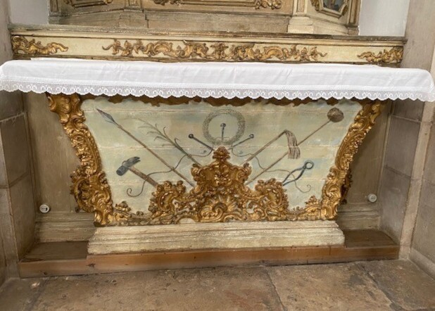 No decorrer destes trabalhos de conservação e restauro foi descoberta uma pintura que se encontrava oculta num altar, com a representação dos objetos associados à narrativa da Paixão de Cristo: a coroa de espinhos, os pregos da cruz e as cordas. Nesta pintura estão representados, também, o martelo, a cana, a lança, os dados, o chicote e o alicate, elementos da crucificação de Cristo. Trata-se de uma pintura tardia do século XIX ou inícios do século XX, que poderá ter sido tapada por critérios de uniformização dos altares nas obras da Direção Geral dos Edifícios e Monumentos Nacionais, nas décadas de 40 ou 50 do século XX.