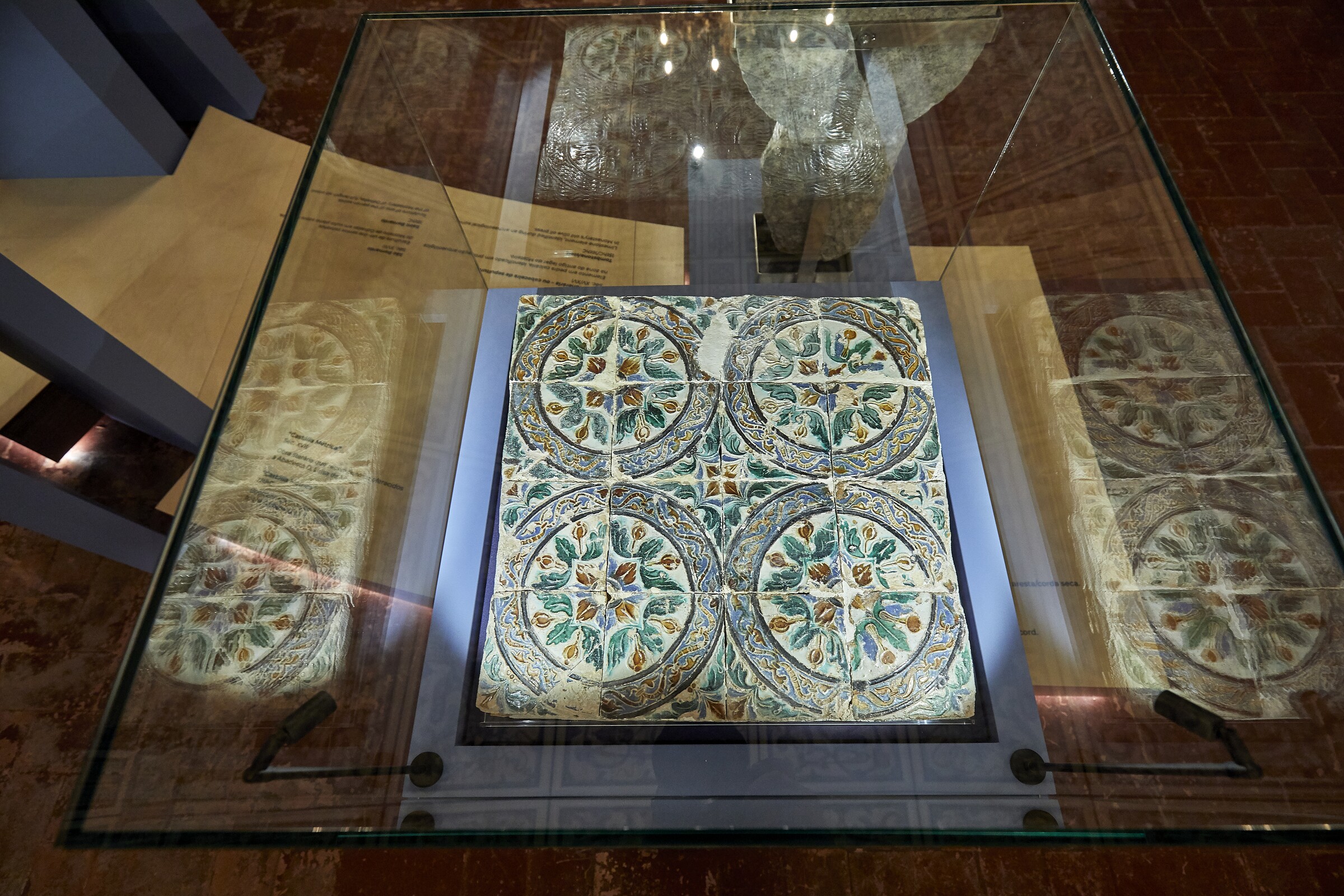 Trata-se de um painel formado por quatro azulejos conhecidos por hispano-mouriscos, que correspondem à tipologia de azulejos de padrão, com composição geométrica e decoração com elementos vegetalistas. A técnica de execução é conhecida por “corda seca” e consiste em sulcar os motivos decorativos, previamente desenhados, com corda embebida em óleo de linhaça, óxido de manganês, banha ou matéria gorda, originando cores diferentes, sem mistura entre esmaltes na pintura e na cozedura. Este painel foi encontrado no recinto do Mosteiro e colocado na Casa do Capítulo, juntamente com outros exemplares azulejares e pétreos.